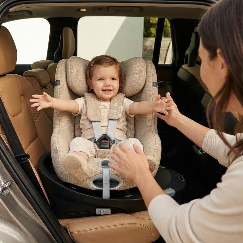 Du setzt dein Kind ganz entspannt hinein, ziehst die Gurte fest und drehst den Sitz dann in die entsprechende Fahrposition. Das schont nicht nur deinen Rücken, sondern macht das Einsteigen auch für dein Kind viel angenehmer. Kein Stossen am Türrahmen, kein unnötiges Gezappel – einfach klick und fertig.